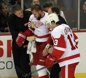 Gotta give kudos to Holmstrom, who had to leave the ice for 13 stitches, and returned to finish the game. He was targeted like crazy…they know he’s a HUGE enforcer for the Wings right now.