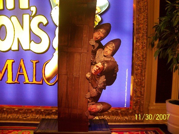 Day three – Slept in/got up early to read. GIANT breakfast buffet at our hotel. A little more relaxed today, cause our feet were dying after yesterday. Went to “Fashion Show” – mall with tons of stores, and a regular fashion show every hour that comes up out of the floor. A little rainy today. Went back to the Venetian for a Gondola ride, some gelato and some street shows. Then over to the Wynn to see Spamalot…HILLARIOUS! Sarah even smiled once or twice.