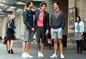 Now the guy on the right is clearly doing something wrong…it doesn’t work for him. The other two can almost pull it off, but they’re lacking the correct foot apparel. But it still makes me wonder if I could make this work…or if I’d even try it? Clearly, I’d have to sneak out of the house before my wife caught me and fixed the fashion faux pas. I think, on a REALLY hot muggy summer day…if I was wearing a suit jacket…I might give it a shot.