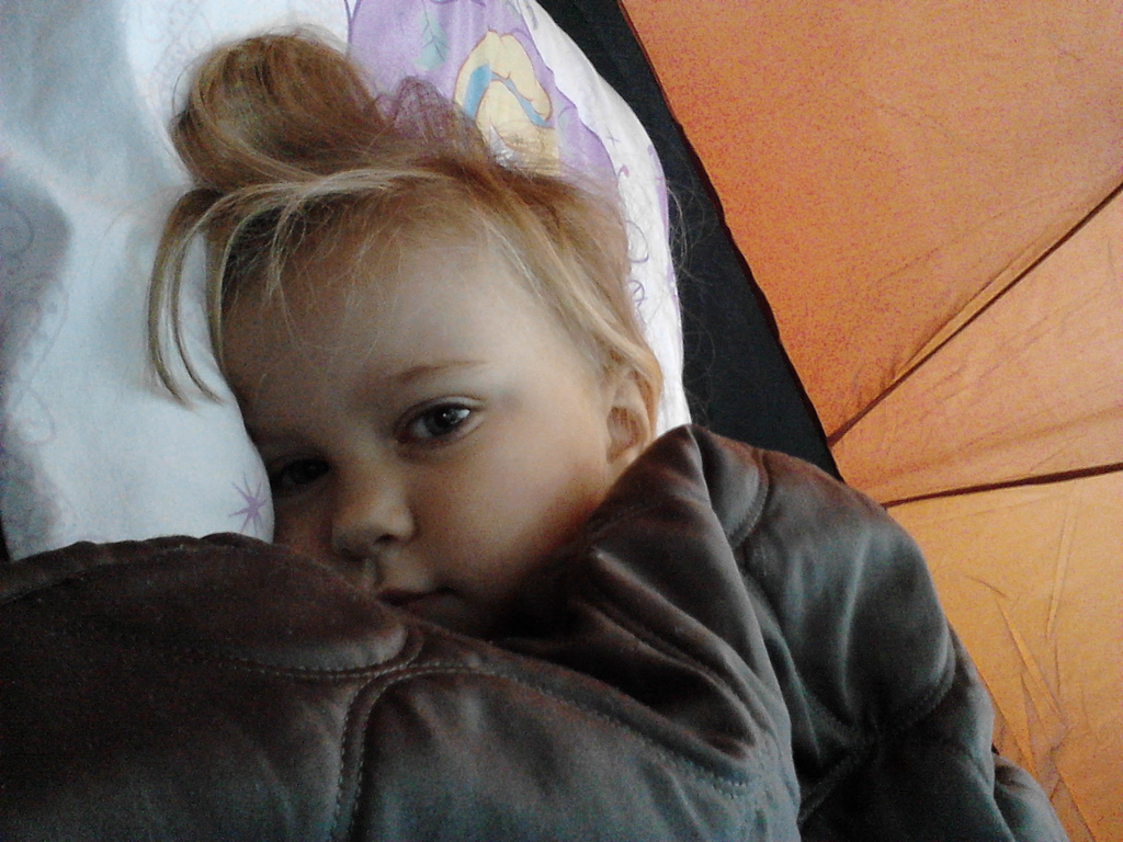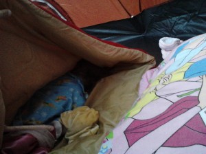 It worked out great! Mommy and Ruby joined us for story-time (Currently reading “Stuart Little”), and “best/worst part of the day” time. The forecast called for weather in the mid-40’s, but nice and dry. The rainfly would have kept in the heat some, but of course the girls wanted to see the sky/tree, so we got rid of it. I told them the