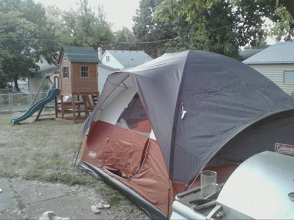 shipping) from Amazon. One of the benefits of 1. being a youth pastor, and 2. homeschooling, is I could tell my kids, “Whenever the tent gets here, we’ll go camping in the back yard!” So when it arrived late Wednesday afternoon while it was pouring down rain and we were about to leave for youth group – I told them we’d camp Thursday afternoon/evening.