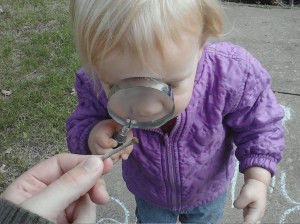 Recently I took a walk with my youngest daughter, Ruby. She’d grabbed a magnifying glass before we left the house, but for the first bit of our walk she just kind of walked at a normal pace – once in a while looking down through the circle as she walked. At one point, I picked up a twig, and asked her to use her magnifying glass so that we could look closer at it together.