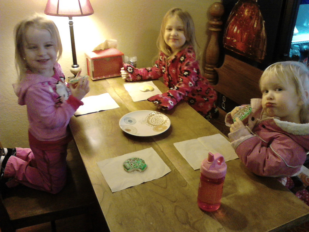 We got all 3 girls out of the minivan, across the bare parking lot, and to the front door before daddy read the sign – “Monday – Closed”. Cue the depressed music. But I wasn’t giving up without a fight. There was a donut shop on that side of town that I’d never been to, and figured the girls would love checking out with me. So off we went, with promises of fresh baked donut-goodness in our minds. We found a parking spot very close in the tiny strip-mall, and were crushed a second time when we saw all the lights off, and the “OPEN” sign as dark as a cloudy winters eve.