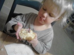 Her eyes grew wide as she took in the vision of frosty baked goodness in front of her. Maybe a moment or two of disbelief, as she looks around. Surely this must be a test? This couldn’t be intended for my enjoyment alone? Finally, her true desire is revealed. She has behaved and told herself “no” long enough.
