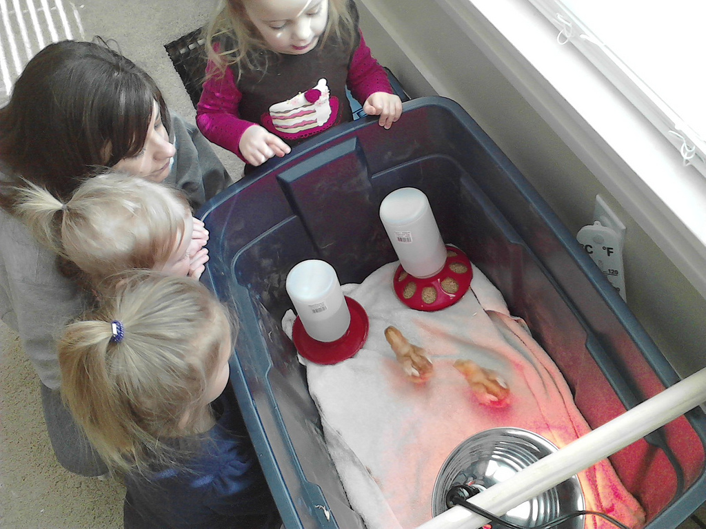 1. Great idea. We live a few miles outside of town, and really enjoyed raising 6 chicks that we got 2 years ago. It has been a fantastic experience for all 4 of our daughters. They have learned about creation, responsibility, and life and death (we now have only 2 chickens).