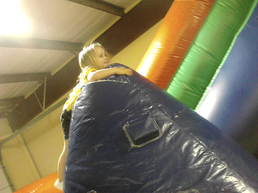– climbing to the top of…well…anything. A couch, a chair, a table, a bed, or an inflatable toy. 🙂