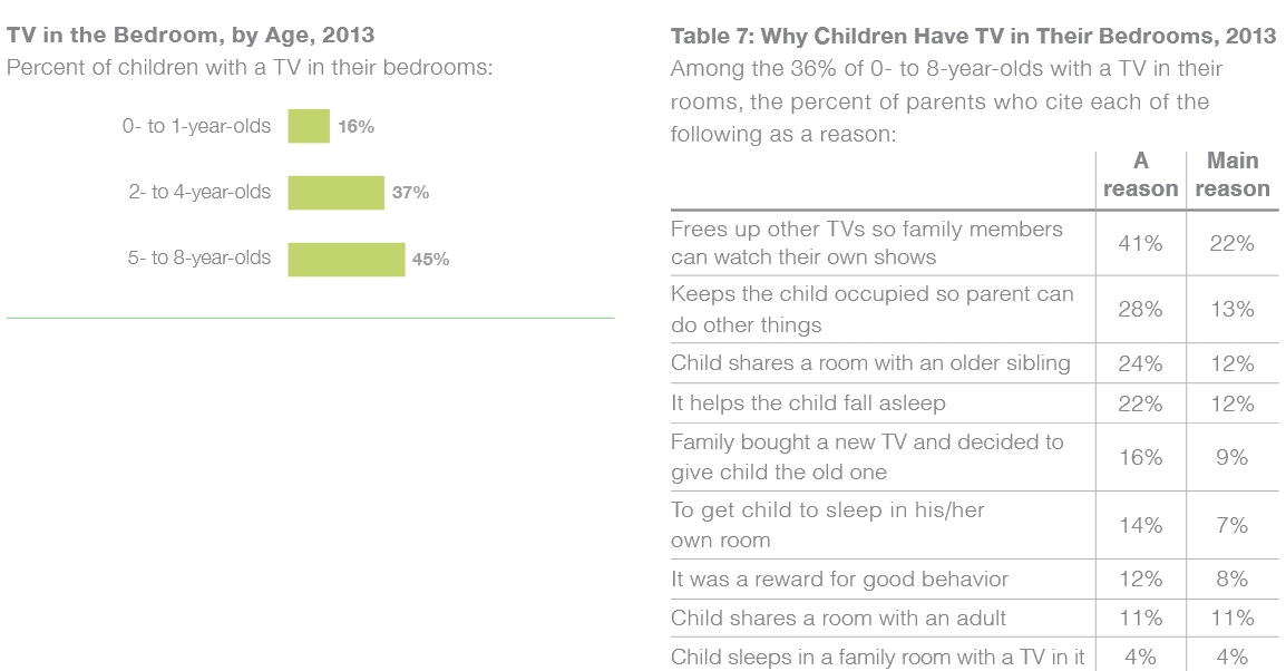 Wait a minute. A huge percentage of children under age 8 have televisions in their bedroom, and a large reason for it is so that the adults can watch their own shows….but 70% of parents think media either has no impact, or helps their family spend time together??