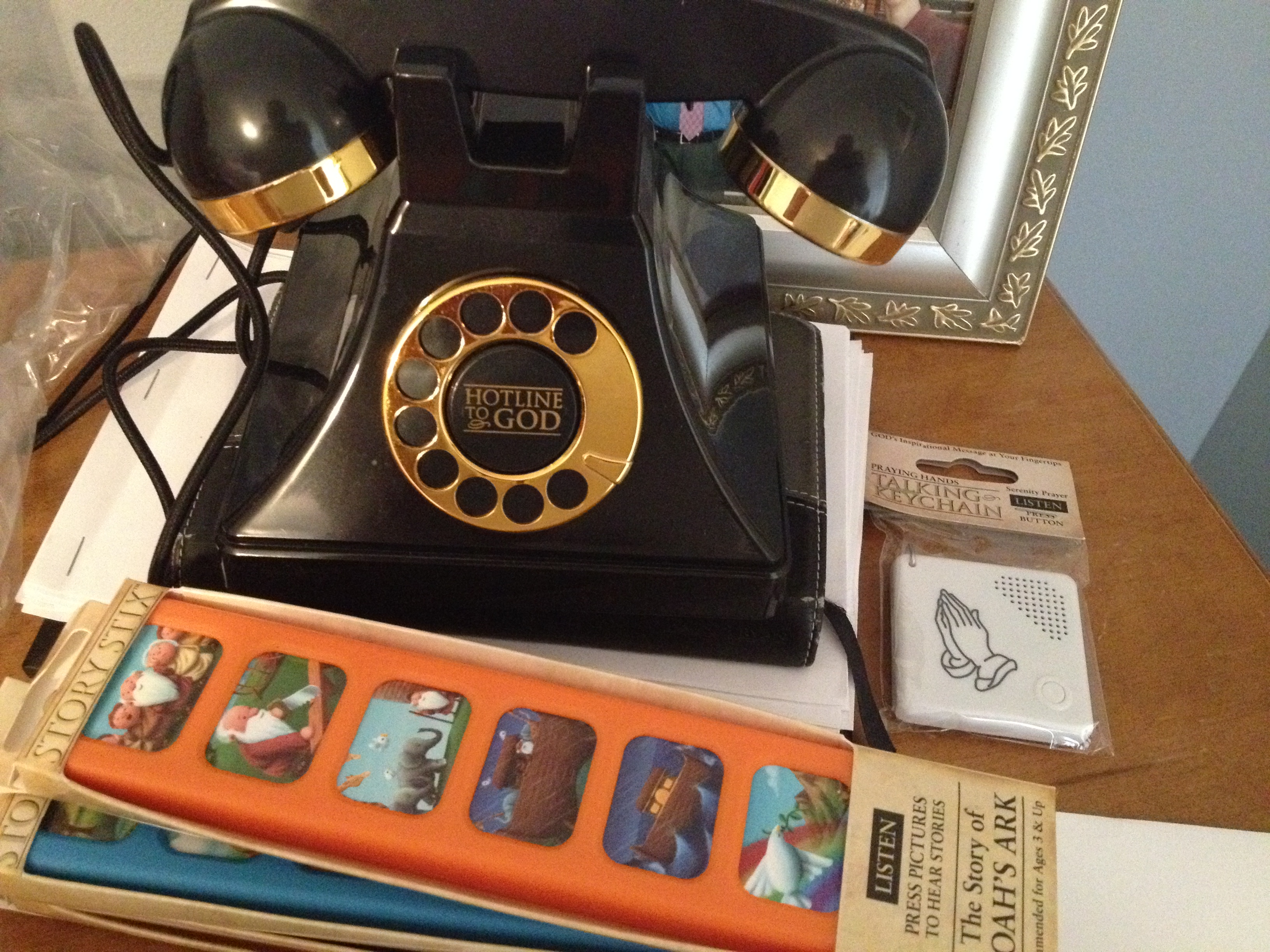 a sort of “Really? This exists?” response from parents. Main conclusion here? Spend much less money on an actual Bible. Read it to your children. Then buy them a toy rotary phone….cause they love playing with that. Might even consider the “Hotline to God”, because there aren’t many toy rotary phones out there without red receivers and moving eyes.